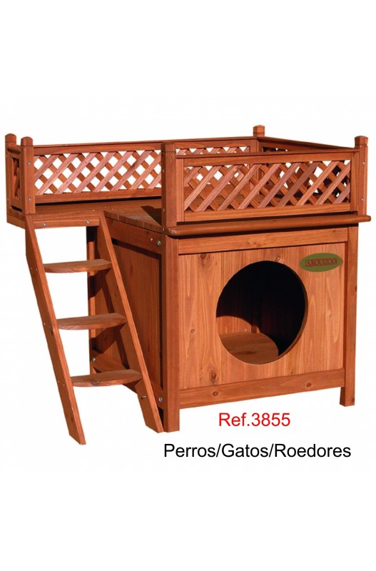 Madera tratada y resistente al frío y calor Con patas que elevan la base del suelo Incluye escaleras. Medidas: 73 cm x 58 cm x 64 cm
