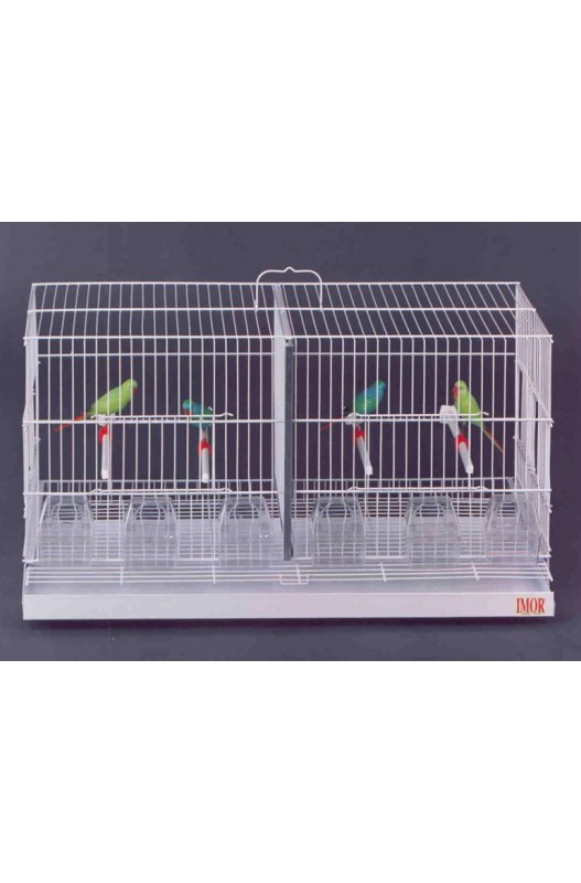 Jaula para la Cria de Canarios. 6 comederos individuales, 2 Departamentos. Color Blanco Medidas de la jaula: 60x30x26 cms.
