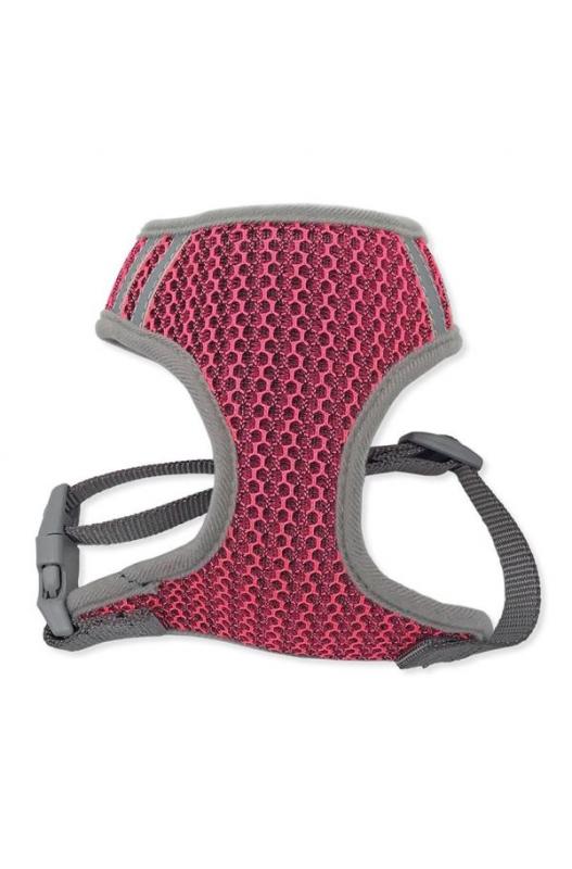 Petral de color rosa y ribete gris, para perros. Talla M: Cuello 30 cm – pecho 35-50 cm.