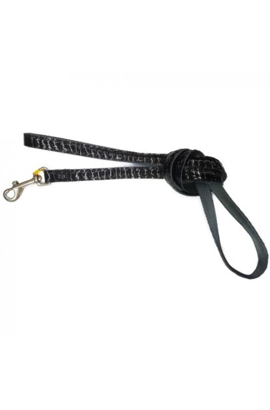 Ramal Croco Soft color negro para perro de raza mini (Yorkshire, Chihuahua…). Nylon forrado de cuero Ancho: 15 mm Largo: 1200 mm.