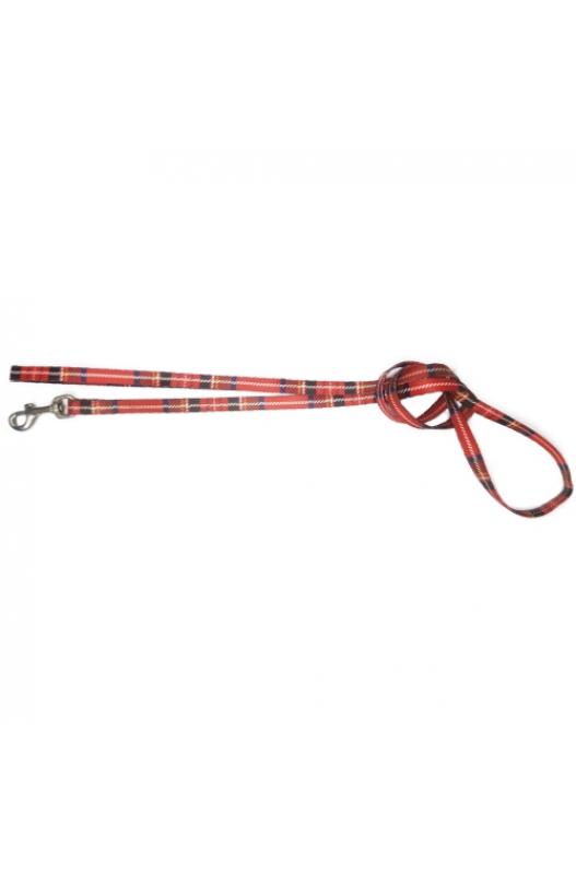 Ramal nylon escoces color rojo para perro de raza pequeña. Ancho: 10 mm Largo: 1200 mm.